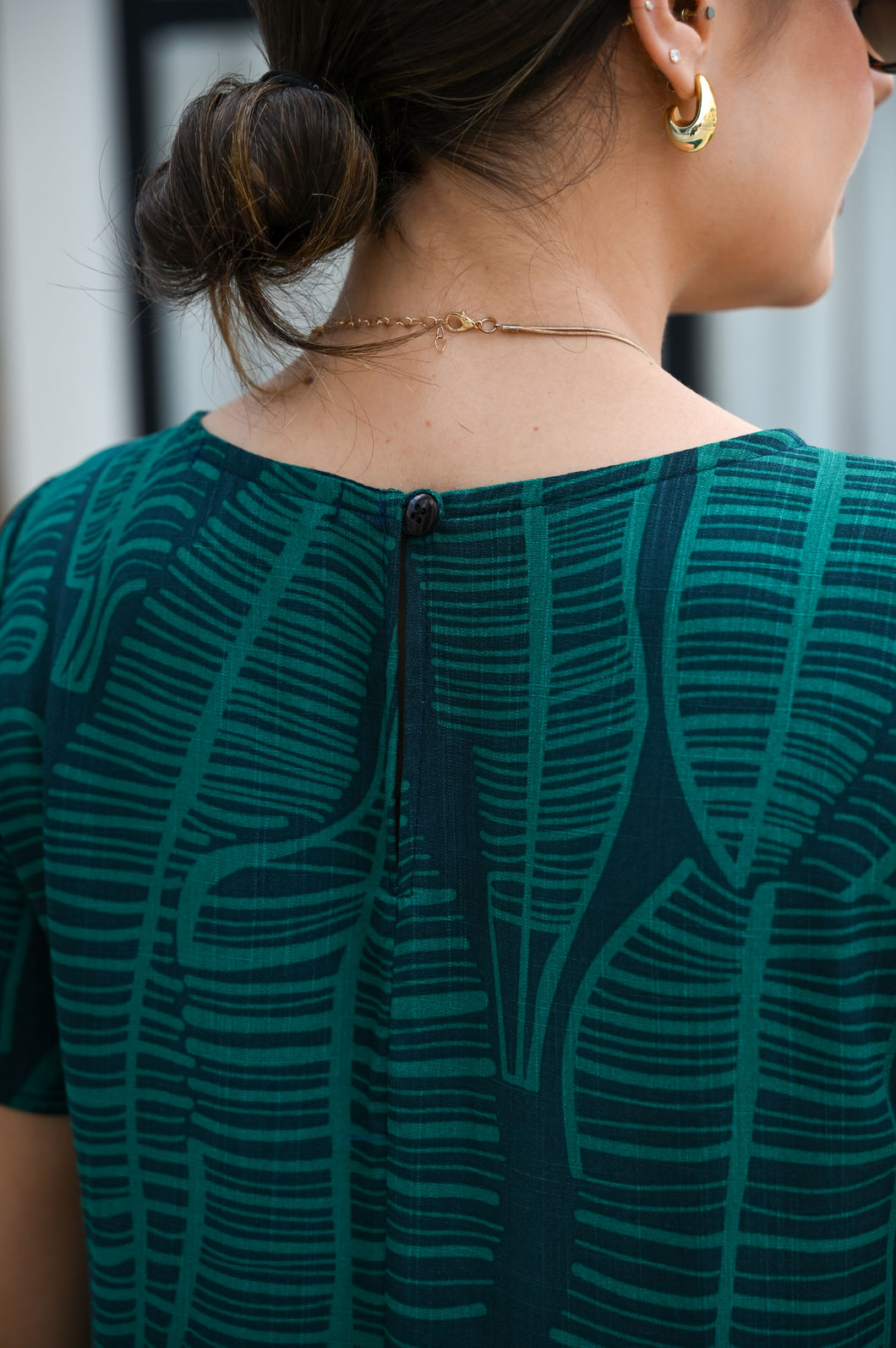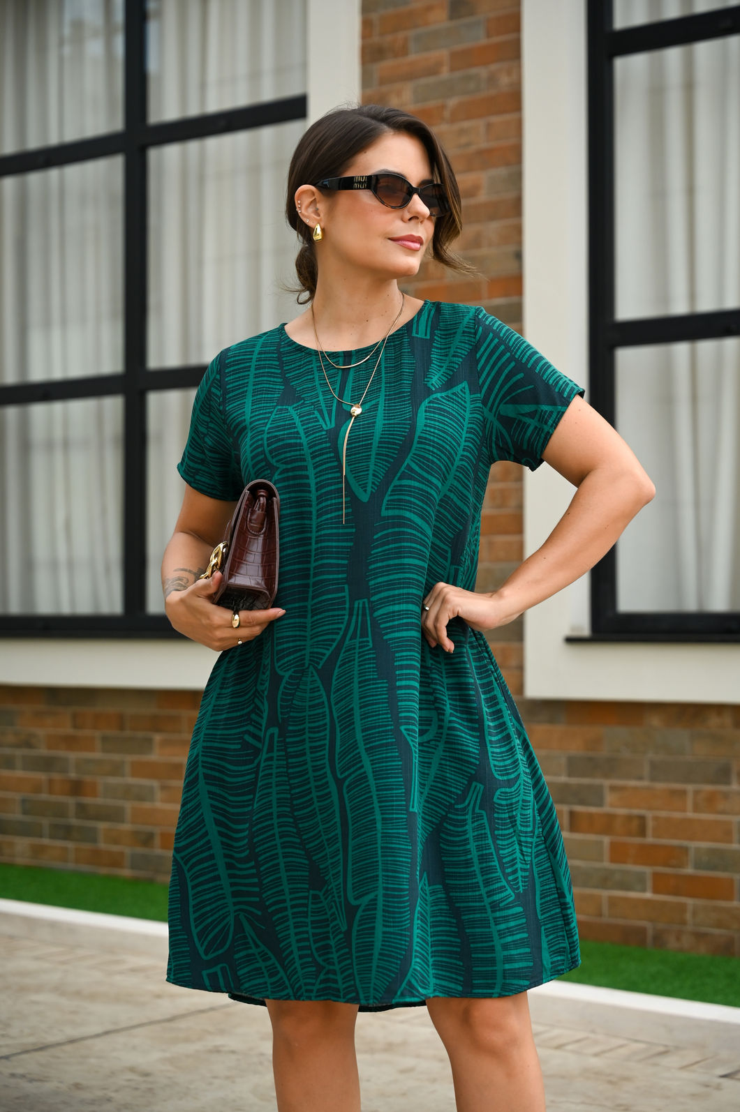 A modelagem em A-line proporciona um caimento solto e fluido, favorecendo diferentes tipos de corpos e garantindo liberdade de movimento. Além disso, os bolsos laterais discretos adicionam praticidade para sua rotina, tornando o vestido um aliado indispensável para momentos casuais ou compromissos informais.